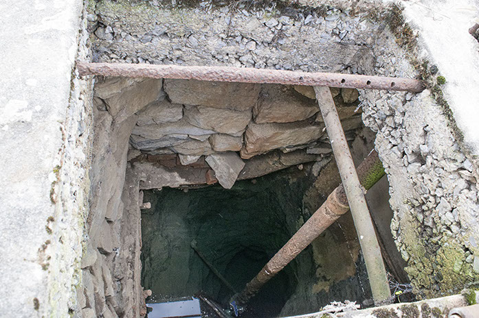 The well itself appeared to have been hacked into the natural limestone bedrock, perhaps expanding upon a natural spring. The upper portion of the well shaft was made of dry-laid fieldstone arranged in a rough circle. Some of this structure had been reinforced on the interior by the addition of a concrete and iron ledge approximately 2.44 m (8 ft.) below ground. Subsequent archaeological investigation of this feature revealed that it was much older than its cap would indicate. Cobbled path features and the modern concrete pathway provided evidence that the well was part of the landscape during different phases of occupation. The elevations of these pathways indicated changes in the grade of the yard, which was matched by additions to the well stack. This well in one incarnation or another appears to have been in use since the early Brumbaugh period.