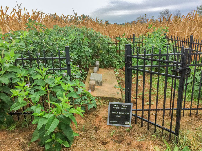 The Brumbaugh family cemetery was located on a gentle hilltop in a field approximately 117.35 m (385 ft.) to the west of the farmstead. At the time of the investigation, the cemetery was delineated by a black-painted aluminum enclosure about 5.49 m (18 ft.) square, inside of which were three grave makers bound together in a large slab of concrete. A disused gravel drive led to the cemetery enclosure from the main driveway into the property. While only three graves were marked, a cursory examination of the surrounding vicinity with GPR suggested that a number of anomalies, possible grave cuts, may exist to the south of the enclosure. As this area was not impacted by the current demolition effort, however, a formal delineation of the graveyard area was not undertaken.