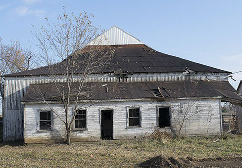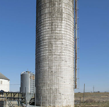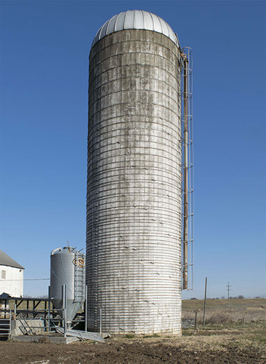 The silo was a large (approximately 4.88-m or 16-ft. diameter) cylindrical structure made of precast concrete held together with steel bands and had a metal dome at the top. It was situated to the east of the center of the original barn, just outside the paved barnyard. Likely dating to the Grove occupation, historic aerial photographs show that the silo was built after 1957, but before 1968, making it one of the most modern structures on the farmstead.