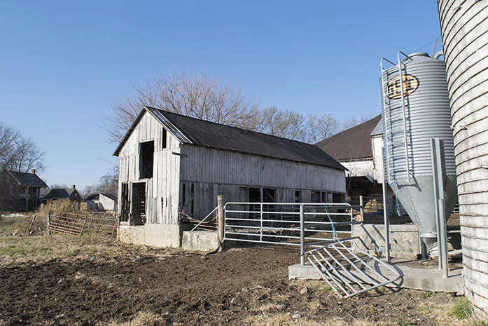 The hog pen was a timber-built structure situated to the east of the barn additions. This structure sat on a concrete foundation that began at grade on the west side but became elevated to the east. The structure was made of sawn lumber and was divided into general stalls and feeding troughs. There was a small second story that was accessible by ladder. The structure is visible on a 1938 aerial photograph, and given the use of concrete for the foundation, it is likely the hog pen was erected by Grove at some point after his purchase of the property in 1924.