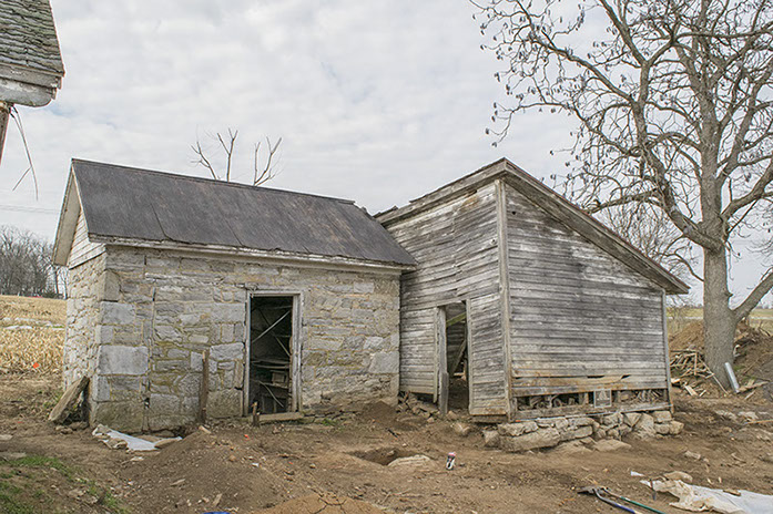 The chickenhouse sat on a concrete foundation and was not the same dimension as the wagon shed, corn crib, and tool shed addition, suggesting it was added at a later date. It would appear that the initial incarnation of the barn dates to the Brumbaugh period, the wagon shed/corn crib/tool shed addition to the Kendle period, and the chickenhouse to the Grove occupation, as the Groves appear to have been the first occupants of the farm to use concrete in any meaningful fashion.