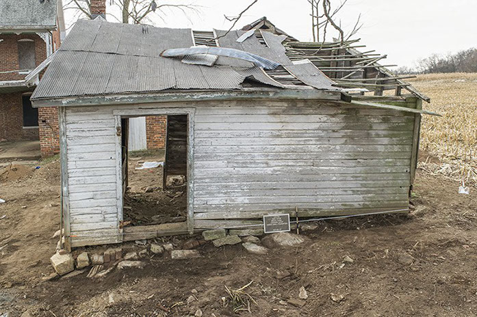 A free-standing chickenhouse was located near the farmhouse, to the north of the wash house/summer kitchen and smokehouse. The structure, which was 6.25 x 4.42 m (20.5 x 14.5 ft.), was timber-built and clad in clapboard with a corrugated sheet metal roof. The structure was perched upon a low stone wall in the east and on bedrock in the west, with its timber sills resting on loosely placed dry-laid stone foundations on the north and south. The foundation stones, where present, were not mortared and were set directly on bedrock. Examination of the structure determined that it was likely erected during the Kendle occupation