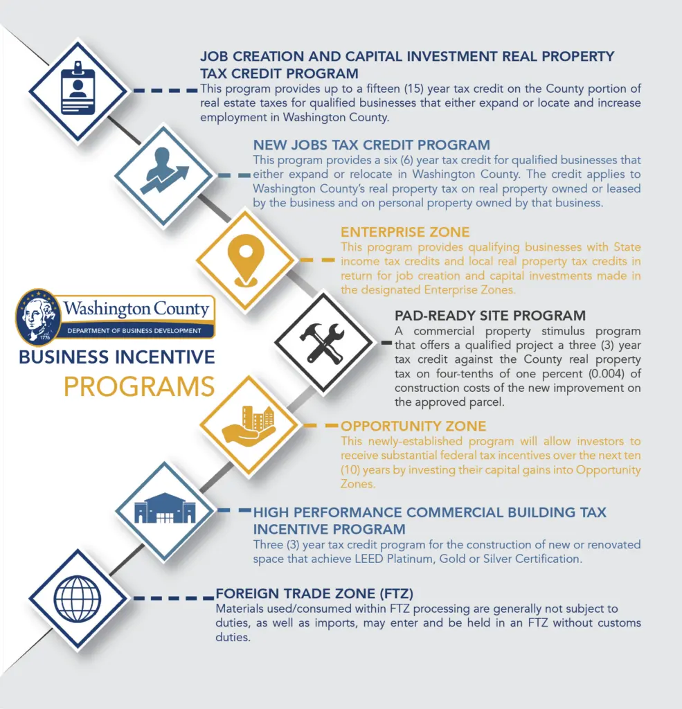 Upon choosing to locate in Washington County, businesses gain access to incentive programs designed to support continued business growth and success.
