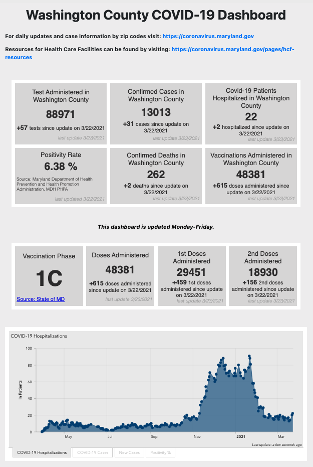 Please visit www.washco-md.net/coronavirus-info for the latest numbers on Washington County’s COVID-19 dashboard.’