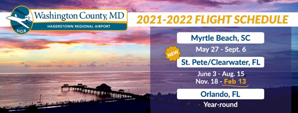 - Flights to Orlando Sanford International Airport (SFB) from HGR continue to be offered year-round. Allegiant has added a flight on Wednesdays in addition to its normal Monday and Friday flights. The Wednesday flights will begin June 9, 2021, and run through August 11, 2021.