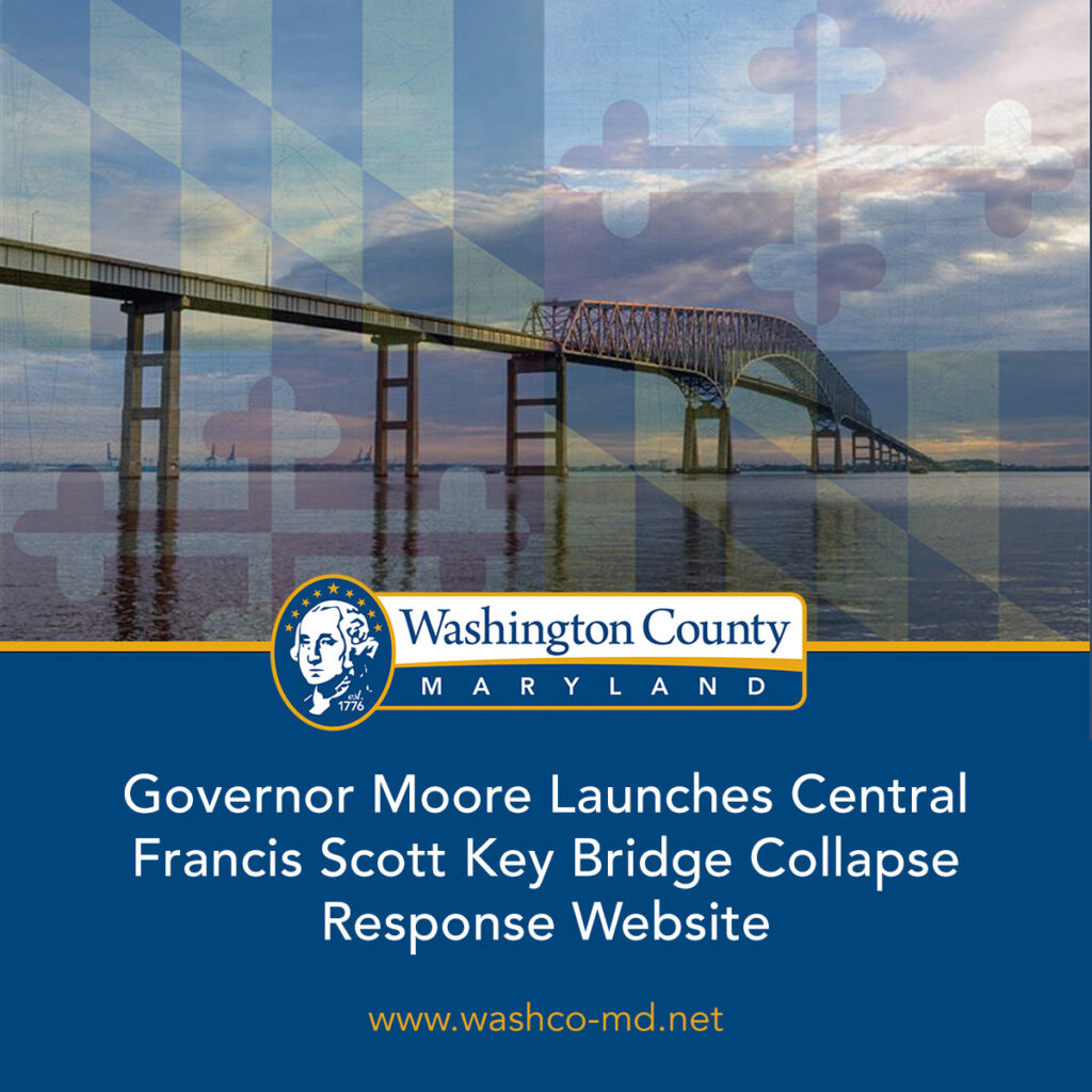 HAGERSTOWN, MD (April 12, 2024) – Since the collapse of the Francis Scott Key Bridge on March 26, 2024, organizations across the state have developed various websites, resources, information portals, etc. to assist those impacted by the bridge incident. The Washington County Department of Business and Economic Development is pleased to announce that Governor Wes Moore launched a central hub for all Marylanders seeking federal, state, and local resources and programs related to the collapse of the Francis Scott Key Bridge. This comprehensive website includes information on relief programs for impacted workers and businesses, major traffic updates for commuters, and guidance on accessing in-person resources available through Maryland Business Recovery Centers.