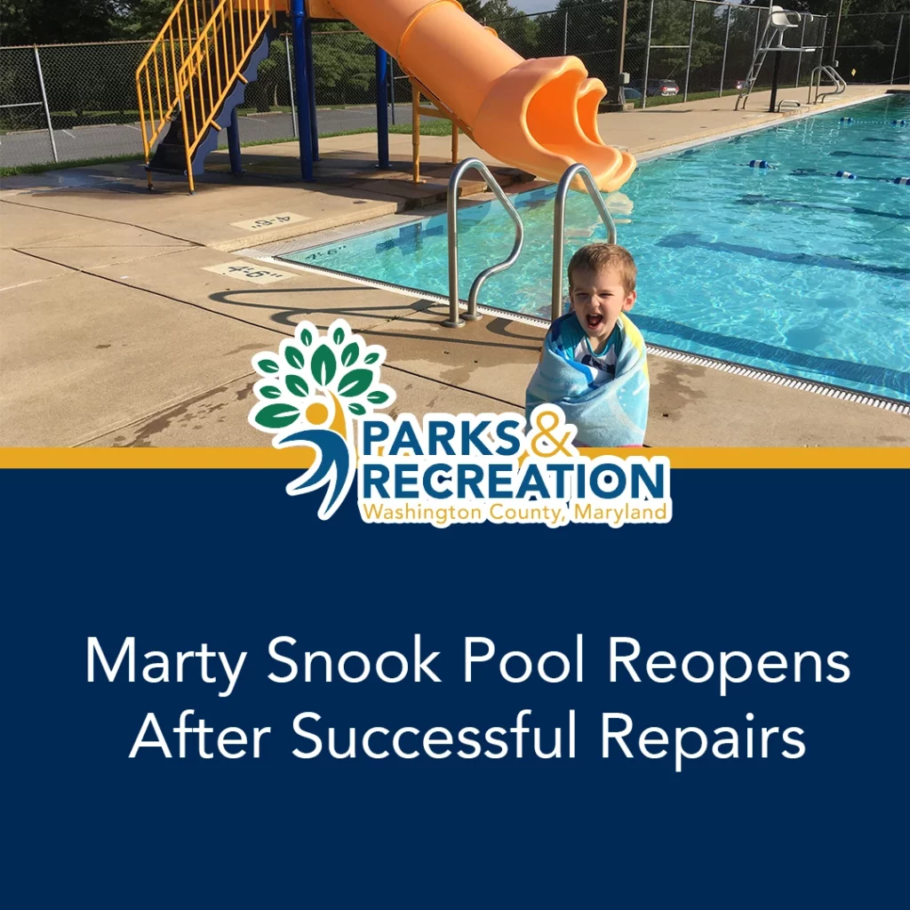 HAGERSTOWN, MD (July 7, 2023) – The Washington County Parks and Recreation Department is delighted to announce the reopening of Marty Snook Pool following the completion of necessary repairs. The pool, which experienced a crack earlier this week, has undergone meticulous restoration, and all required safety checks, including water and chemical assessments, have been successfully completed.