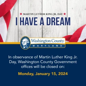 HAGERSTOWN, MD (January 10, 2024) – In observance of Martin Luther King Jr. Day, Washington County Government offices will be closed on Monday, January 15, 2024. County services will operate as listed below: The Hagerstown Regional Airport administrative offices and the maintenance department will be closed on Monday, January 15,