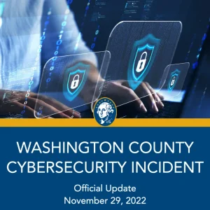 HAGERSTOWN, MD (November 27, 2022) – On November 24, 2022, Washington County became aware of a cybersecurity incident, resulting in disruption to certain computer systems, the County’s website, and certain County services. We continue working to restore County services that were impacted by the cybersecurity incident as quickly and safely