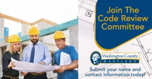 HAGERSTOWN, MD (June 9, 2022) – The Washington County Division of Permits and Inspections is looking to fill the following positions to serve on the Code Review Committee: Maryland Registered Architect Maryland Registered Structural Engineer Maryland licensed Mechanical Engineer Washington County licensed Residential Home Builder Please submit your name and contact information