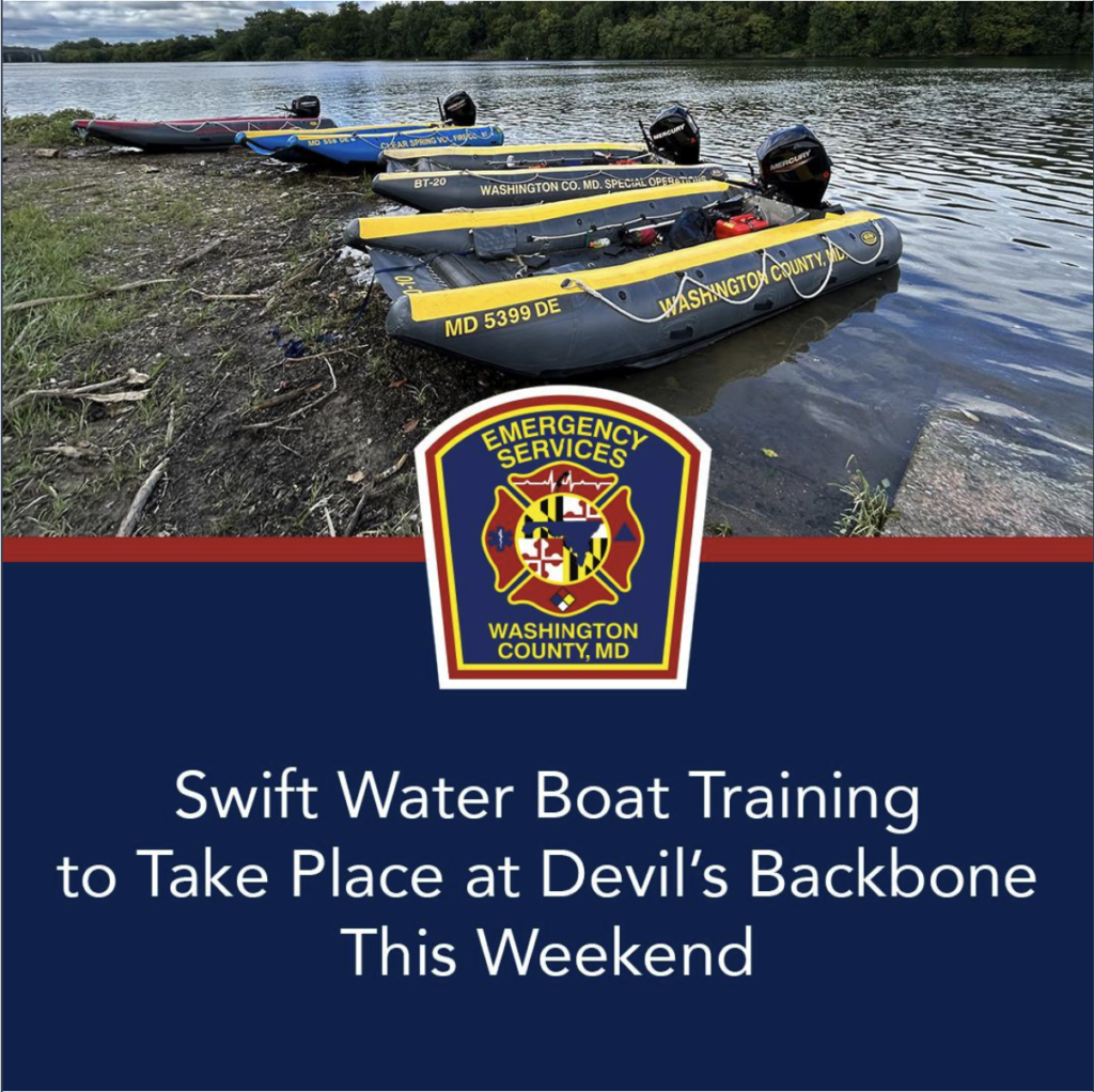 HAGERSTOWN, MD (April 21, 2025) – Washington County Division of Emergency Services (DES), would like to inform the public that swift water boat training will be conducted in the area of Devil’s Backbone Park on Saturday, April 26, and Sunday, April 27, 2025.