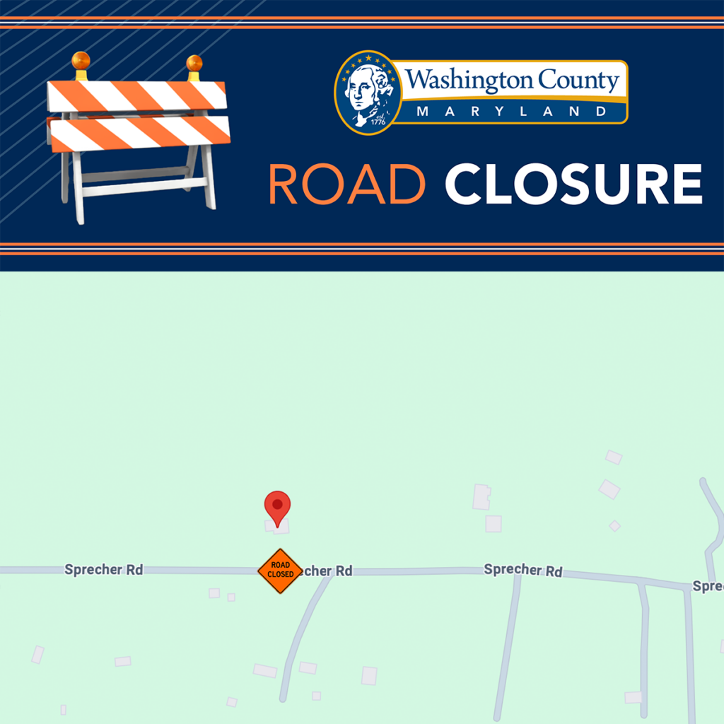 SHARPSBURG, MD (May 9, 2025) – The Washington County Highway Department announces an upcoming road closure on Sprecher Road at 16814 on Tuesday, May 13, 2025 through Thursday, May 15, 2025 between 8:00 a.m. and 2:30 p.m.