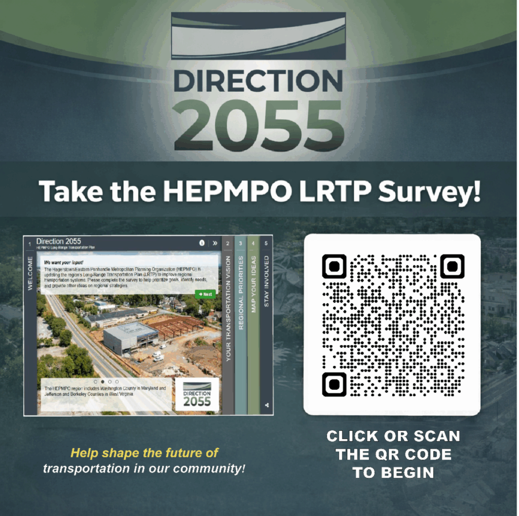 A link to the survey may also be found at: www.hepmpo.net/. Written comments may be mailed to the HEPMPO’s office (33 W. Washington Street – Suite 402, Hagerstown, MD 21740) or sent via email to [email protected].
