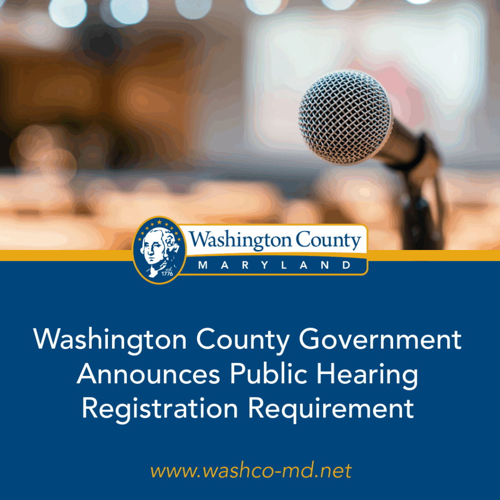 Effective immediately, individuals who wish to provide in person comment or testimony at a public hearing before the Washington County Board of County Commissioners must complete a speaker registration form in advance. The form is available online at: https://www.washco-md.net/county-commissioners/bocc-agendas-and-minutes/public-hearing-sign-up-form/.