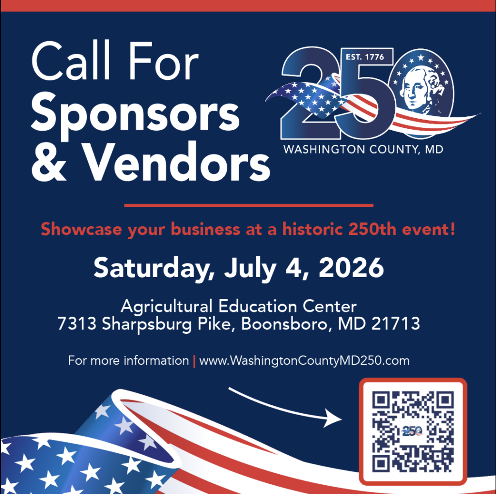 HAGERSTOWN, MD (March 18, 2025) – In the year 2026, The United States of America and our very own Washington County will both be celebrating the historic milestone of their 250th anniversaries. To commemorate the signing of the Declaration of Independence, Washington County is hosting a 250th Anniversary Celebration on Saturday, July 4, 2026. We are inviting vendors, press representatives, and sponsors to be part of this momentous occasion.