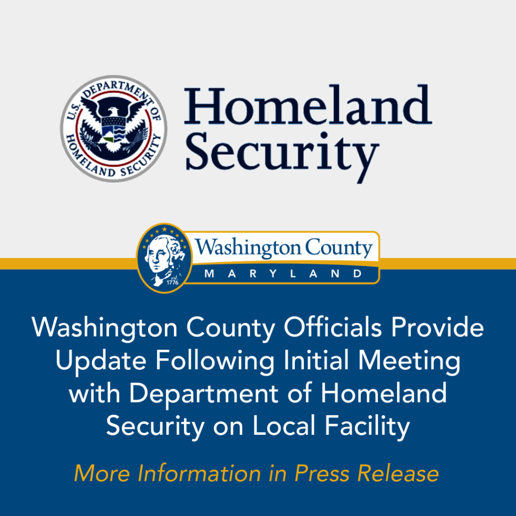 WASHINGTON COUNTY, MD (March 18, 2026) – Officials from the Board of County Commissioners announce additional details related to the initial meeting held with officials from the Department of Homeland Security (DHS) on March 16, 2026. That meeting marked a significant step towards enhancing knowledge sharing and opened the lines of communication regarding the Immigration and Customs Enforcement facility in Washington County, Maryland. This first meeting brought together key subject matter experts, County and DHS leadership.