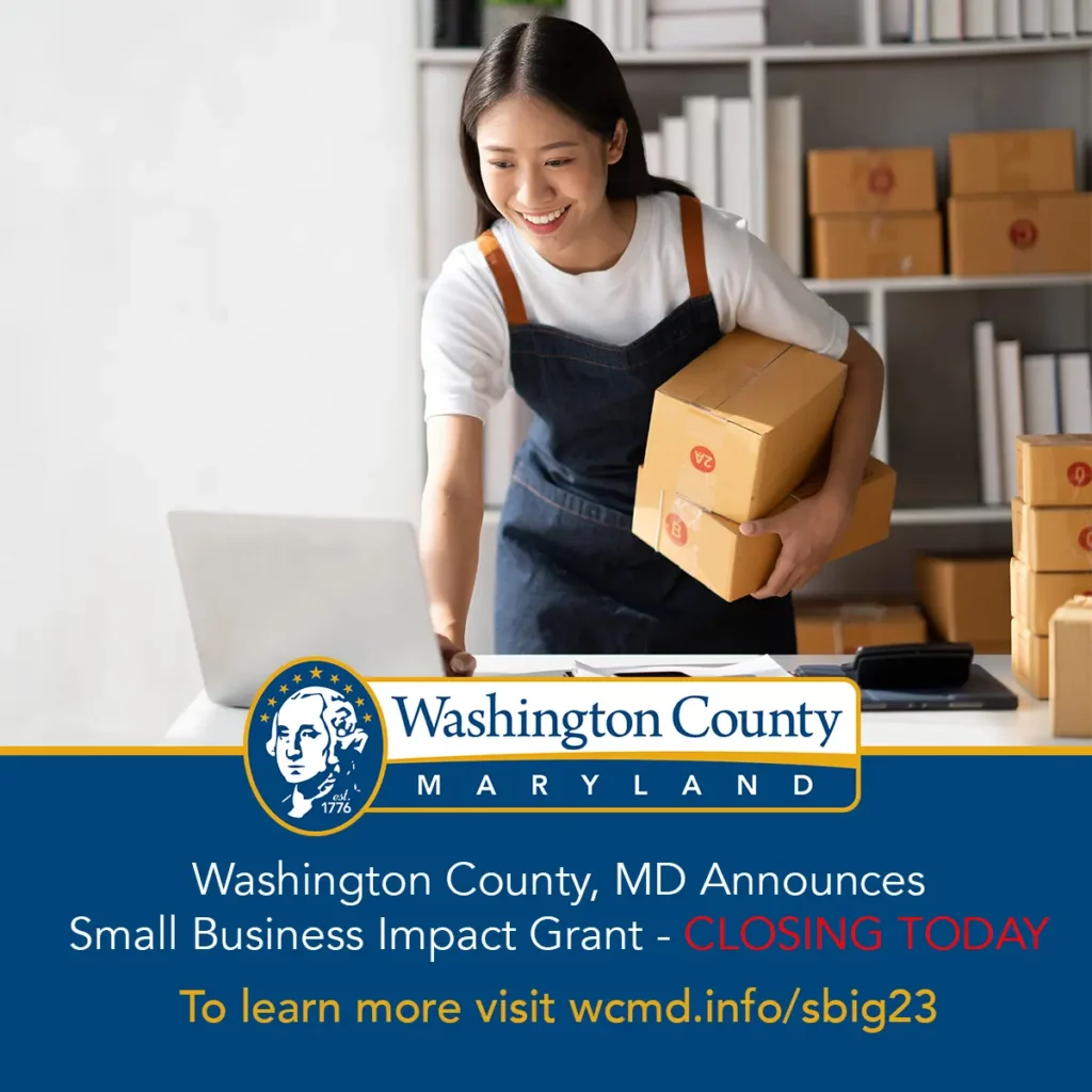 HAGERSTOWN, MD (June 16, 2023) – The Board of County Commissioners of Washington County, MD, announce applications for the Small Business Impact Grant in Washington County, MD, will close today, June 16, 2023, at 4:00 p.m. EST. The grant provides up to $25,000 to eligible small businesses using $5,000,000 of American Rescue Plan Act (ARPA) funding. Completed applications will be processed and awarded on a first-come, first-served basis.