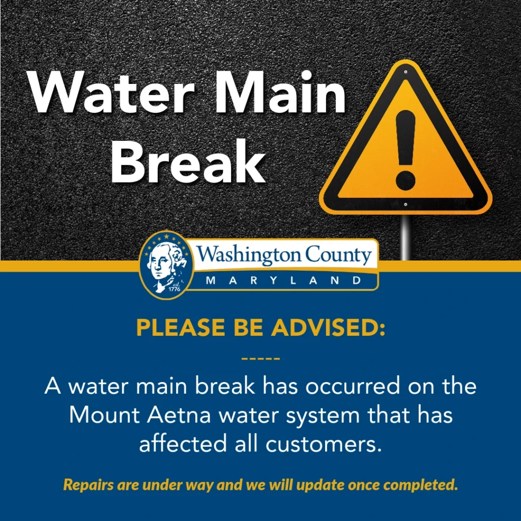 HAGERSTOWN, MD (October 5, 2023) – The Washington County Division of Environmental Management announces a water main break within the Mount Aetna water system.
