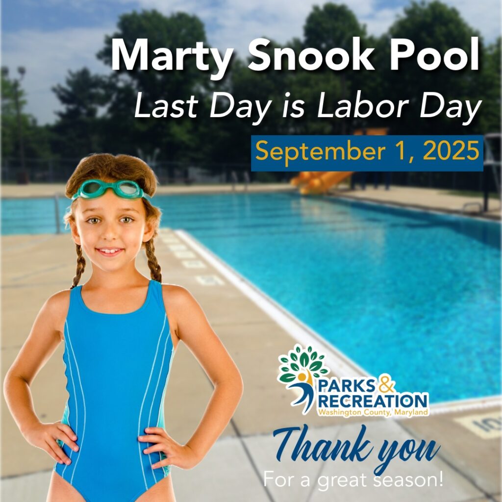 HAGERSTOWN, MD (August 12, 2025) – The Washington County Department of Parks & Recreation announces that Marty Snook Pool will be closing for the 2025 season after Labor