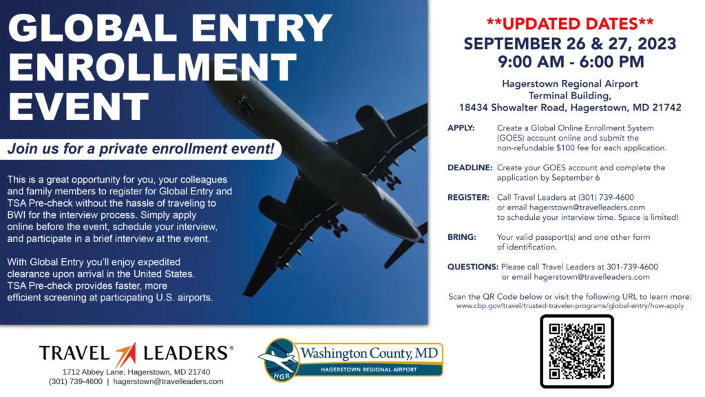 Due to popular demand the Global Entry Event has been extended into two days. Register now to attend the sessions on either Tuesday, September 26